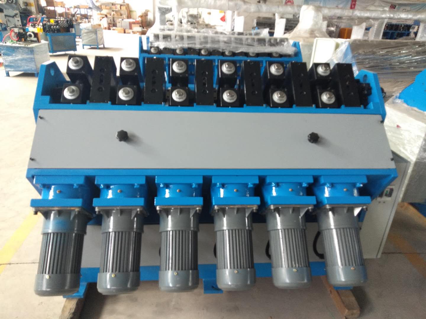 此款機器主要是針對“通用型”縮管機單軸傳動,容易損壞電機的不足,增加了1對過橋雙軸齒輪,中間用雙萬向軸連接電機與軋輥軸,使機器平行傳動,扭距增大,從而減少電機與軋輥軸的直接受力,起到保護作用。